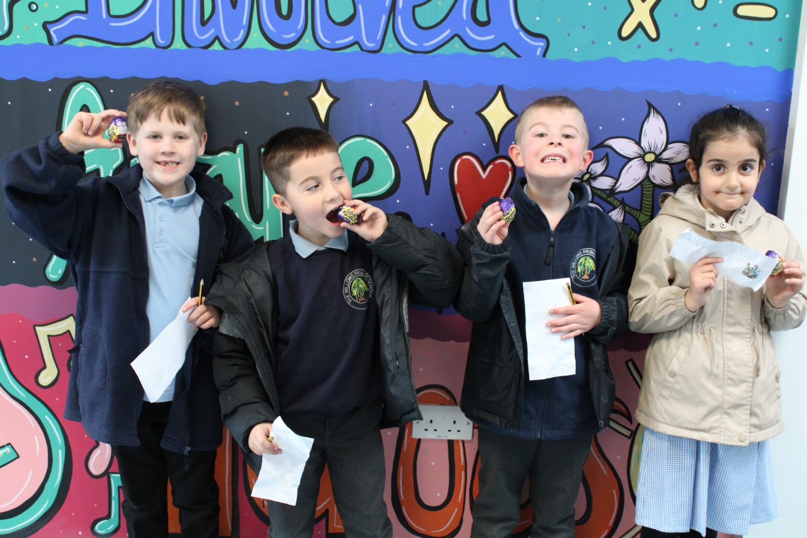 We had a lovely time finding the clues and working out the word that took us to the eggs!