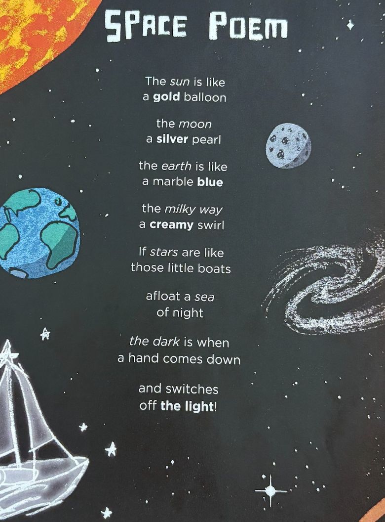 In Literacy, we have been learning about poetry and have learnt 'Space Poem'. We explored what similes are and will be writing our own using our learning all about space and the moon landing!