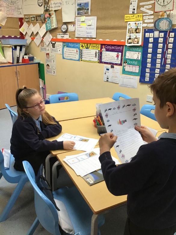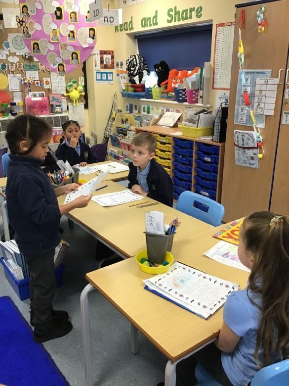 In English, we stood up in front of an audience and used a presentation voice to perform our 'Sandwich Poem'. First we practised reading our 'Sandwich Poem' aloud to our table groups. Then we read aloud the poem in front of the class.