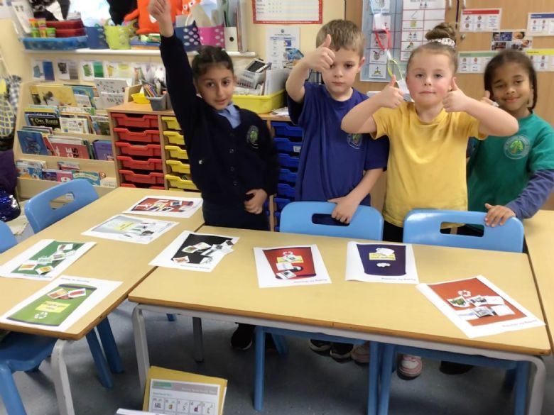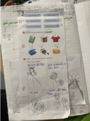 This week we have been looking at ways that we can look after our planet. We have been sorting objects and pictures – learning about recycling, reuse and reduce. Our DT challenge is: 'To make a bag out of recycled materials'. We can choose to use these materials – fabric/cardboard/plastic.
