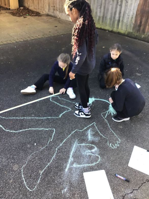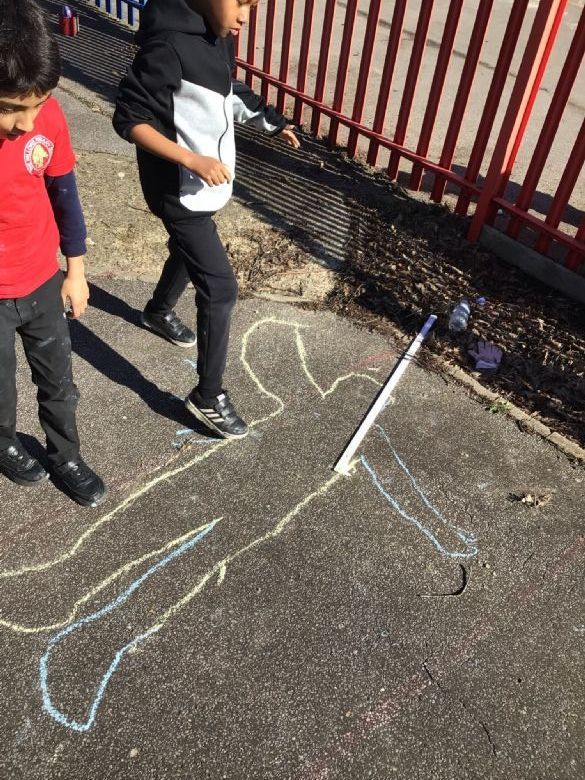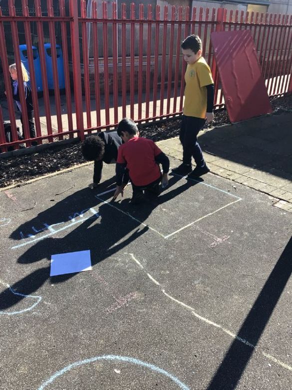 In maths we have been looking at the perimeter of shape. Some of us went out to explore the perimeter of shapes outside on our school playground!