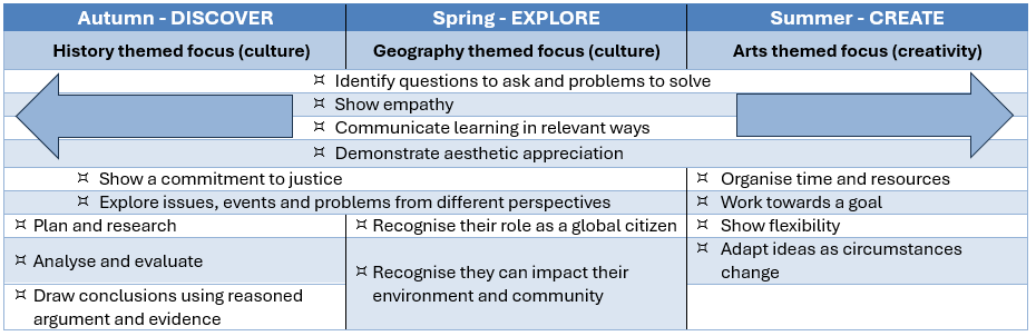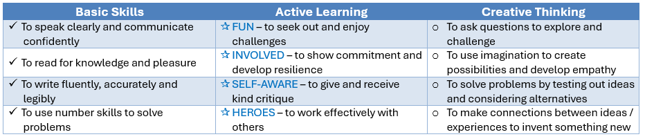 Each term, further skills (related to our choice to focus on fewer things in greater depth) will be prioritised: